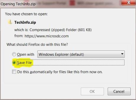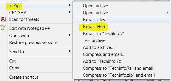 Alternatively, if you do not use 7zip, but other unzip app (i.e. WinRAR, WinZIP, etc), the procedure is the same. If not embedded in the right click menu, just double click the TechInfo.zip file, it will open with the unzip app that you have installed, then you can extract it to the desired location. (an 'Extract' button will be visible in the app)